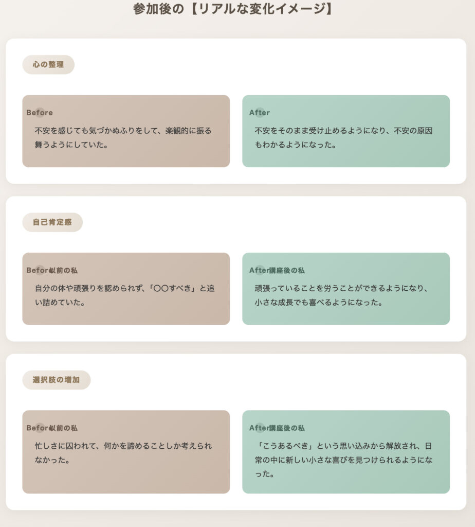 決まったプロンプトに従って書き進めることで、普段意識しない「自分で作った思い込みの枠」に気づいていきます。「〇〇しなきゃ」「〇〇であるべき」という、知らず知らずのうちに自分を縛っていたルール。それが見えてくると、「あれ?これって本当に必要だったの?」と問い直すことができるんです。